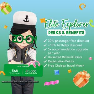 The Chelsea Loyalty Program offers passengers the opportunity to earn points and enjoy increasing benefits and rewards through different tiers such as Traveler, Adventurer, Navigator, and Elite Explorer. Members’ benefits include ticket discounts, birthday discounts, seasonal promotions, free accommodation upgrades, free Chelsea Travel merchandise, referral and registration points.